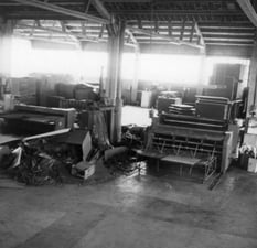Empezamos con la construcción de una nave de 450 metros cuadrados en un terreno de mis padres y la compra de unas máquinas usadas para la fabricación de cajas de cartón ondulado. El coste total fue de 7.500 €. (1.250.000 pts) que fuimos devolviendo los años siguientes.